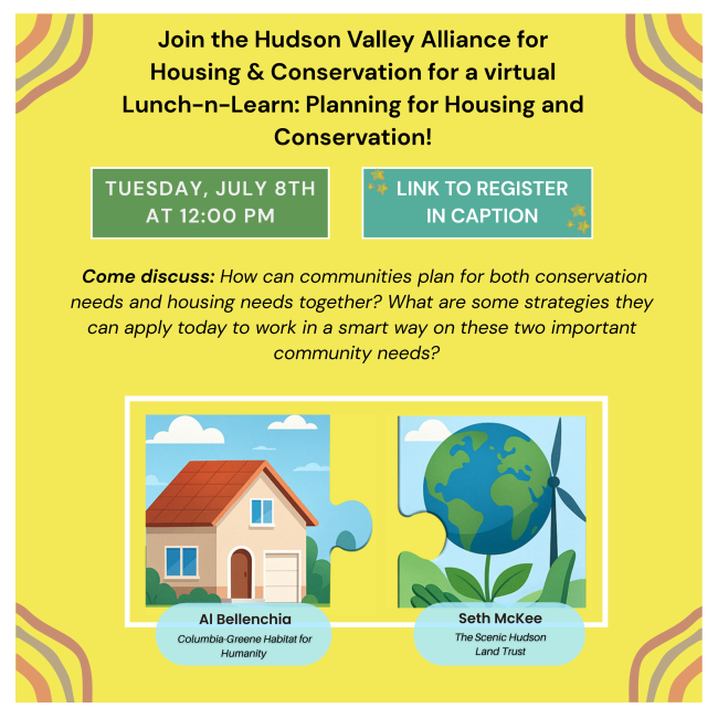 Join the Hudson Valley Alliance for Housing & Conservation for a virtual Lunch-n-Learn on: