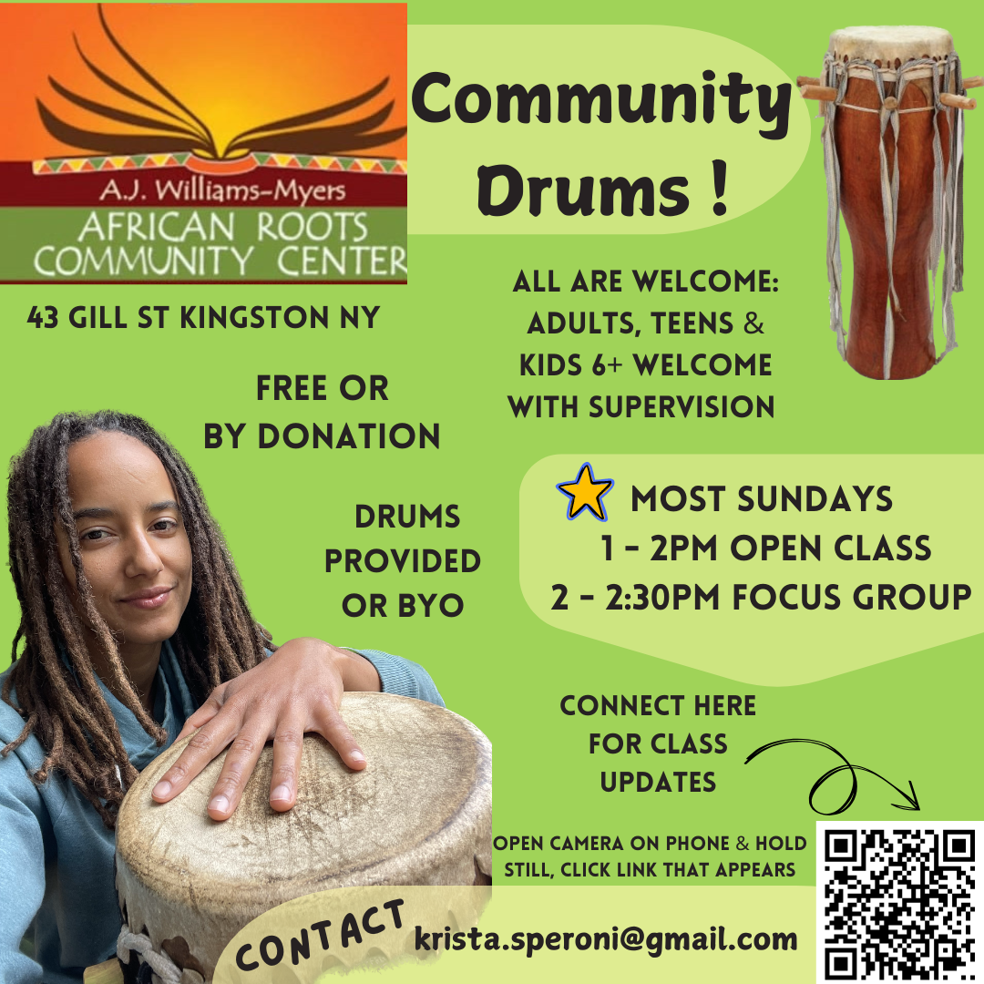 « All Events This event has passed. Community Days (Kingston) May 18, 2025 @ 1:00 pm - 3:00 pm « The Imperfectionist Yoga & Meditation Workshop Walkway Connections: Meet Sojourner Truth » Add to calendar Google Calendar iCalendar Outlook 365 Outlook Live Details Date: May 18, 2025 Time: 1:00 pm - 3:00 pm Website: https://africanrootslibrary.org/programs/ Organizer African Roots Community Center View Organizer Website Venue A.J. Williams-Myers African Roots Community Center 43 Gill Street Kingston, 12401 + Google Map