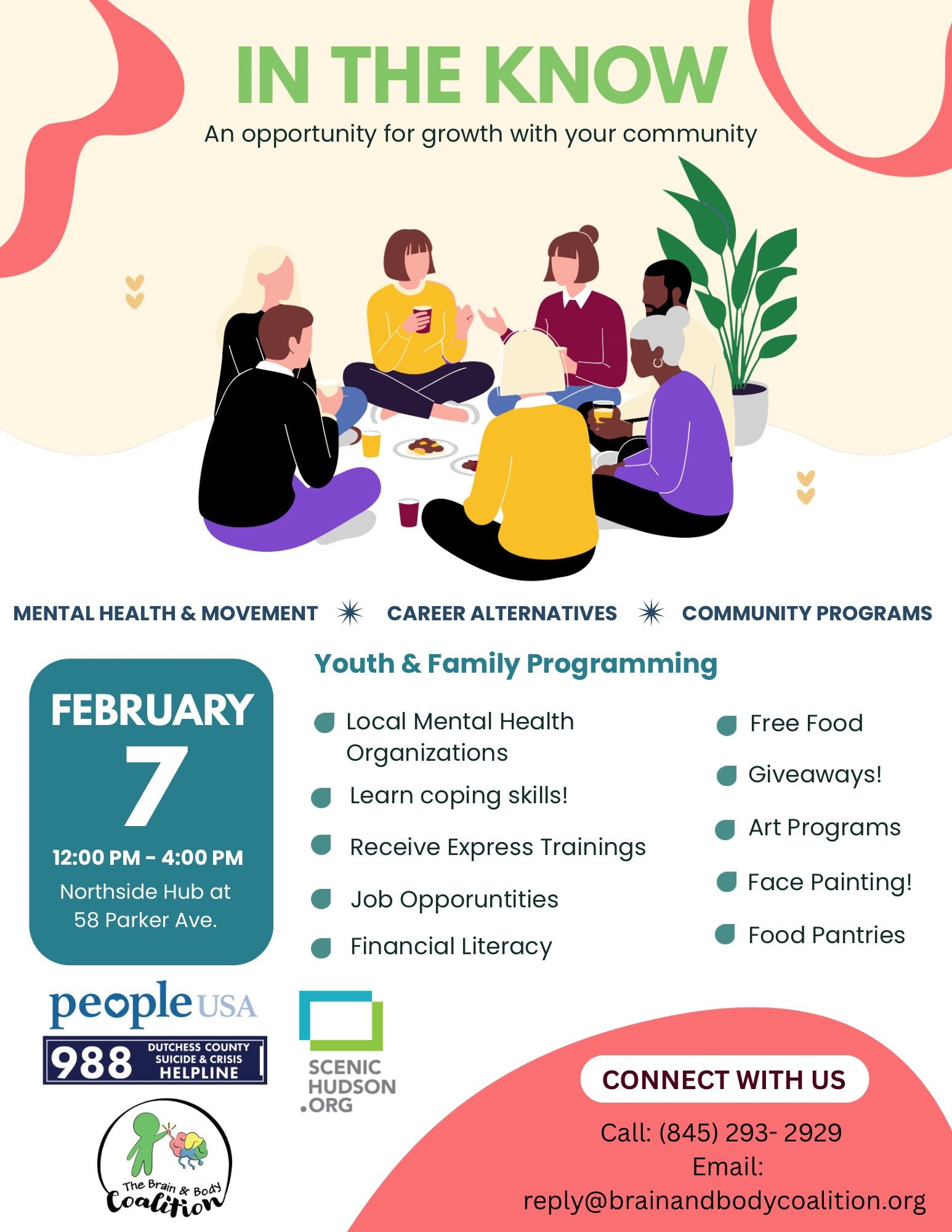 Join us for “In the Know,” a community growth and wellness event hosted by The Brain and Body Coalition and People USA. This event is designed to educate the community about the various dimensions of wellness and introduce family-friendly resources, games, and activities to promote growth in these areas.