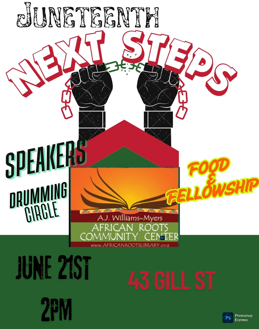 Speakers, Drumming Circle, Food & Fellowship at the African Roots Community Center in Kingston!