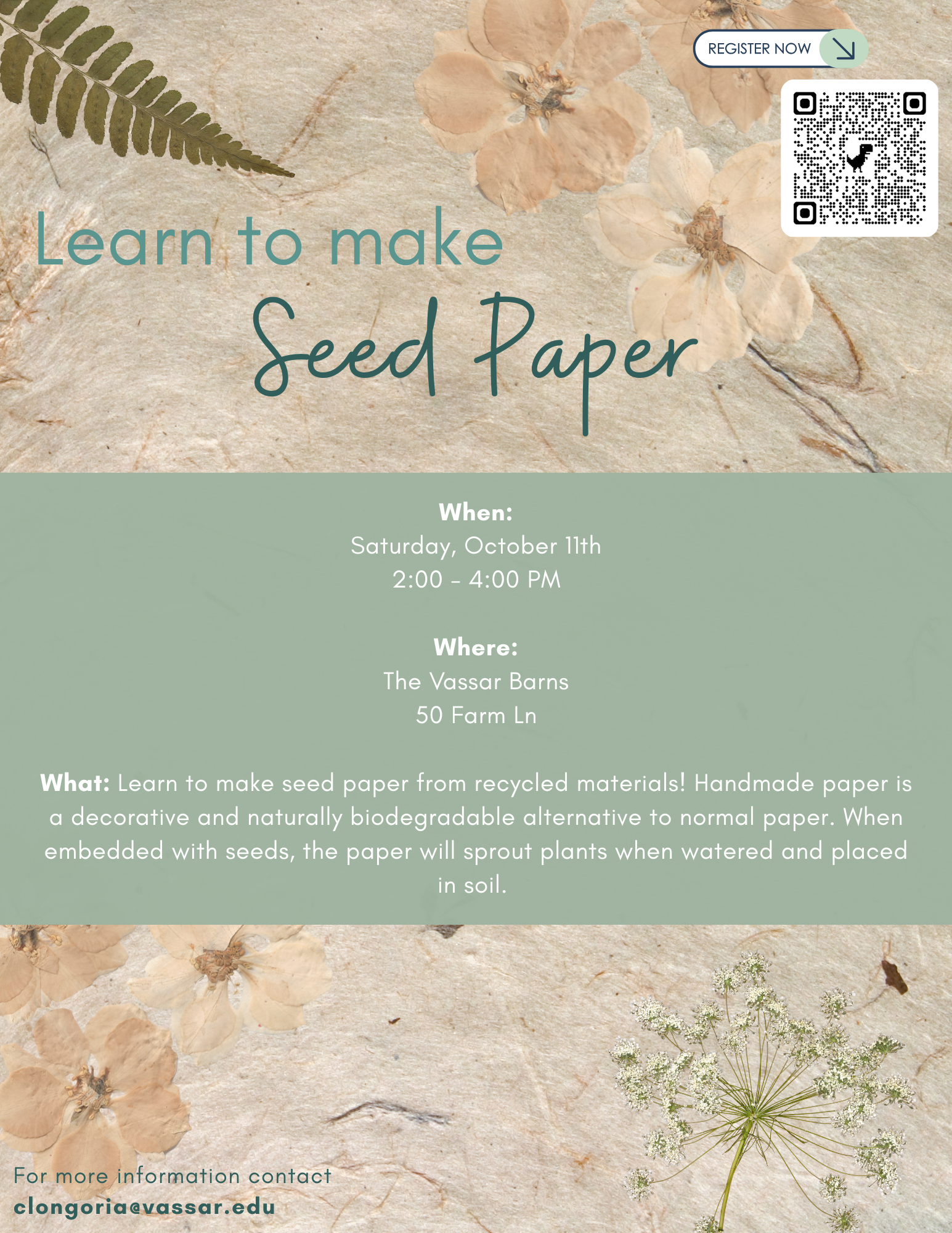 Learn to make your own seed paper from recycled materials! Seed paper is embedded with native wildflowers and will sprout plants when soaked in water and placed in soil. It is a decorative and sustainable alternative to normal paper that is great for one-of-a-kind stationary, artwork, and more! Register here.